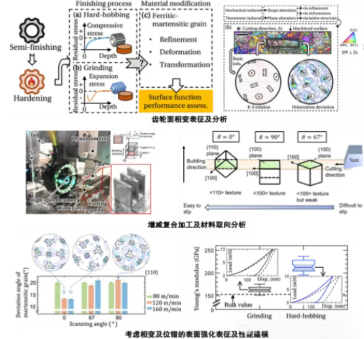 高强度钢、高温合金等难加工材料广泛应用于航发关键传动零部件。在三维多轴增减协同加工条件下,力热复合效应使表面去除与强化过程伴随复杂材料组织演化,同时可能加速刀具磨损并产生表面瑕疵,显著影响最终表面性能。因此亟需开展多尺度建模,建立材料-工艺-性能耦合关系,通过工艺优化实现表面性能的主动调控,提升传动部件的机械性能与疲劳特性。